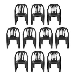 Conteúdo: 10 un da Cadeira Poltrona Plástica Empalhável 182kg Mor