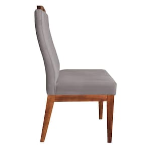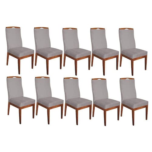 Conjunto 10 Cadeiras Para Sala De Jantar Ricco Estofada Madeira Carvalho Veludo Cinza Claro - Ahazzo Móveis Cor Cinza
