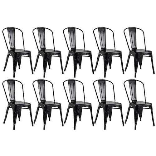 Cadeira Fixa Design Tolix Metal Preta Conhecida popularmente como Cadeira Francesinha, tem grande influência no mercado europeu devido ao seu elegante design retrô. O modelo clássico idealizado pelo francês Xavier Pauchard nos anos 20 foi resultado de seu experimento pioneiro da fabricação de móveis com metal galvanizado. A cadeira com formas simples, porém funcionais fez tanto sucesso que se tornou muito popular em fábricas, escritórios, restaurantes, bem como nos cafés, bares e parques públicos da época. Hoje conhecida como Cadeira Tolix, é um ícone da estética industrial, podendo ser utilizada em qualquer ambiente trazendo elegância e personalidade. Com estrutura em aço de carbono e acabamento em pintura eletrostática, pode ser utilizada em ambientes externos. Projetada com alguns furos em seu assento com a finalidade de não acumular água, facilitando sua limpeza e manutenção. A Cadeira Tolix é clássica, com design vintage e pode ser combinada com outros modelos de cadeiras. Disponível em variedade de cores, permitindo um ambiente mais descontraído.