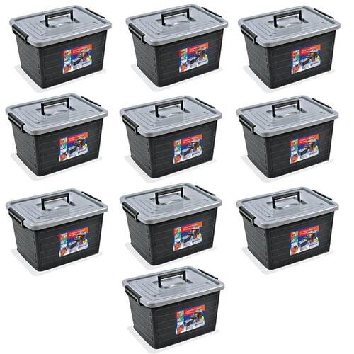 Kit 10 Caixas Organizadoras 35 Litros PRETA 25166 Arqplast Kit 10 Caixas Organizadoras 35L Com Rodinha Esta prática e funcional caixa organizadora mantém organizados, protegidos e bem armazenados todos os Itens que sejam necessários. Ajuda a organizar o ambiente e economiza espaço. Com travas laterais, alça para transporte e rodinhas embaixo, fica muito fácil locomover a caixa para diversos ambientes. Capacidade: 30 Litros Medidas em cm: CxLxA : 50x38x31