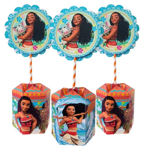 Kit 10 Centro De Mesa Decoração Moana E Maui Personalização