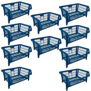Kit 10 Cesto Empilhavel Expositor Organizador Plástico Azul 42508 Presto cesto Expositor Prático Grande Azul Presto O Cesto Expositor Prático Grande ou Guarda tudo é um organizador bastante funcional, desenvolvido para atender as necessidades de exposição e organização de itens em lojas, drogarias, perfumarias e demais estabelecimentos comerciais ou em casa. Largura Altura Profundidade Carga Máxima 42cm 23 cm 57 cm 40kg
