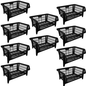Kit 10 Cesto Empilhavel Expositor Organizador Plástico Preto