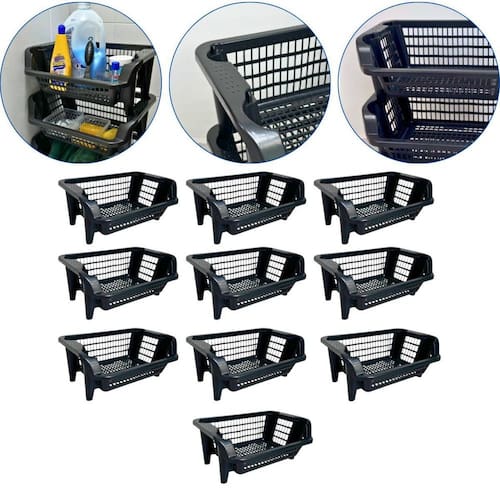 Kit 10 Cesto Plástico Expositor Empilhável Preto 16 Litros O Organizador Empilhável 16 Litros é a solução prática para manter cada ambiente da sua casa em ordem. Produzido em 100% polipropileno, é resistente, leve e durável, além de contar com alça antiderrapante, que facilita o transporte e garante segurança no manuseio. Seu design empilhável otimiza espaços, permitindo armazenar mais em menos área, seja em prateleiras, closets ou lavanderias. Com medidas 45,5 x 34 x 20 cm, é ideal para diferentes usos: Caixa organizadora para cozinha/dispensa: alimentos, mantimentos, utensílios. Organizador para lavanderia: produtos de limpeza, panos, esponjas. Organizador de closet/quarto: roupas dobradas, brinquedos, acessórios. Uso versátil: também indicado para escritório, garagem ou . Se você busca organização prática, funcional e durável, essa caixa organizadora plástica com alça é a escolha perfeita para transformar seus espaços. Marca: Não Informado