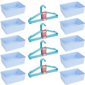 Kit 10 Cestos Multiuso E 20 Cabides Infantil Reforçado Azul