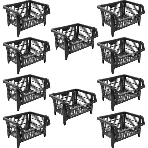 Kit 10 cestos plásticos expositores preto 44,5x20,5x35cm Kit 10 cestos plásticos expositores preto 44,5x20,5x35cm