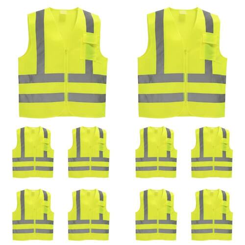 Kit Com 10 Colete Florescente Com 1 Bolso De Segurança Faixas Refletivas - Volk