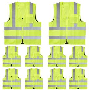 Colete de segurança confeccionado em tecido 100% poliéster fluorescente, com faixas refletivas prata, fechamento em zíper. Colete de Sinalização de alta visibilidade, sinalização de alta visibilidade.