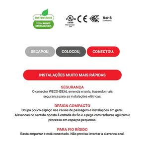 Kit com 10 conectores elétricos 3 vias para condutores de até 6mm 41a weco/ideal Características: Produto: conector 3 vias weco Corrente suportada: 41a Aplicação: ideal para chuveiros, equipamentos de alta potência e instalações elétricas residenciais e comerciais Acabamento: estrutura resistente e de alta qualidade Instalação: simples, prática e segura Vantagens: conexões firmes, maior segurança, durabilidade, praticidade em espaços reduzidos e confiabilidade em altas correntes Marca: Não Informado