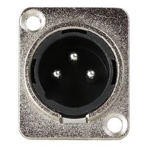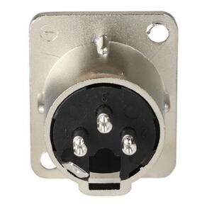 - Conector: Xlr Macho 3 Pinos Para Painel - Plug: Xlr 3 Pinos - Furação Padrão - Material de alta resistência - Tipo: 3 polos - Dimensões A x L x P : 3,0 x 3,0 x 3,0 cm - Peso: 0,02