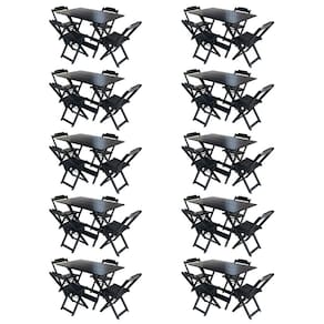 Kit 10 Conjuntos de Mesa com 4 Cadeiras de Madeira Dobravel 120x70 Preto - Preto