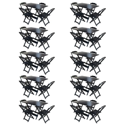 Kit 10 Conjuntos De Mesa Com 4 Cadeiras De Madeira Dobravel 120x70 Preto