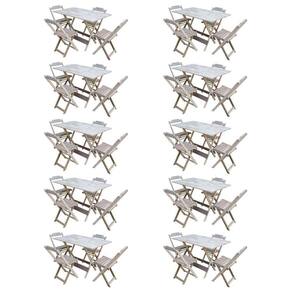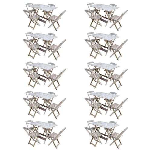 Kit 10 Conjuntos De Mesa Com 4 Cadeiras De Madeira Dobravel 120x70 Sem Pintura/crua - Cor: Marrom