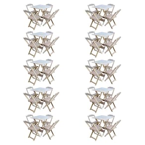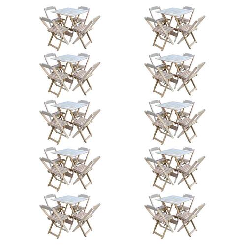 Kit 10 Conjuntos De Mesa Com 4 Cadeiras De Madeira Dobravel 70x70 Sem Pintura/Crua é ideal para bares, restaurantes, estabelecimentos, áreas de lazer e tambem para sua casa. Feito em madeira maciça, tornando resistentes e duráveis. Seu design permite que seja encaixado em qualquer ambiente, trazendo um toque a mais para seu estabelecimento. Além de sua durabilidade, o que lhe trará conforto para servir seus clientes. Por ser dobrável torna-se mais fácil guardar, manusear e limpar o produto. Atenção: EVITE USAR PRODUTOS ABRASIVOS E QUíMICOS PARA LIMPEZA DO PRODUTO, aconselha-se o uso de pano umedecido para melhor conservação; mantenha o produto fora de chuva e sol constantes MESA Cor: Sem Pintura/Crua Modelo: Dobravel Dimensões: Altura 76cm | Largura 70cm | Profundidade 70cm CADEIRA Cor: Sem Pintura/Crua Modelo: Dobravel Dimensões: Altura 80cm | Largura 45cm | Profundidade 42cm