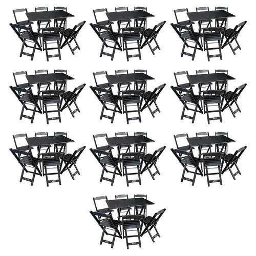 Kit 10 Conjuntos De Mesa Dobráveis De Madeira 70x110cm Com 6 Cadeiras Preta