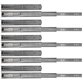 Kit com 10 Corrediças Telescópica 35cm Pesada 45mm 40Kg Larga Trilho para Gaveta 14Pol. XF A Corrediça telescópica pesada é indicada para gavetas de cozinhas, closets, quartos, banheiros, lavanderias, prateleiras retráteis/extensíveis, bases de teclado e mobiliário em geral. - Marca: XF - Referência: V19955-5X - Acompanha 10 corrediças 5 pares - Comprimento: 350mm 14 Polegadas - Largura: 45mm Larga - Capacidade de Carga do Par: 40Kg pesada - Espessura: 12,7mm - Para uso geral - Possibilita a abertura total da gaveta com deslizamento suave, preciso e resistente - Corpo em aço galvanizado - Deslizamento através de de aço - Tipo: telescópica - NÃO Acompanha parafusos para fixação na gaveta - Sua estrutura é composta por de aço e possuem três peças: :: Uma maior que fica presa ao móvel, na parte lateral onde a gaveta será instalada. :: Uma intermediária que corre dentro do trilho preso à mobília. :: Um menor que é fixado na lateral da gaveta - A corrediça telescópica possui um excelente ganho na abertura, já que a gaveta pode ser puxada por completo, sem correr o risco de sair ou provocar danos ao móvel - Peso bruto: 700 gramas o par - : 90 dias Marca: XF