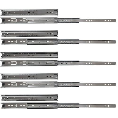 Kit com 10 Corrediças Telescópicas 35cm x 35mm Leve 25Kg Trilho para Gaveta A Corrediça telescópica pesada é indicada para gavetas de cozinhas, closets, quartos, banheiros, lavanderias, prateleiras retráteis/extensíveis, bases de teclado e mobiliário em geral. - Marca: XF - Referência: V19961-5X - Acompanha 10 corrediças 5 pares - Comprimento: 350mm 14 Polegadas - Largura: 35mm - Mais larga que as padrão de mercado que possui 30mm - Capacidade de Carga do Par: 25Kg - Suporta mais carga que as padrão de mercado que suportam 20Kg - Espessura: 11,7mm - Para uso geral - Possibilita a abertura total da gaveta com deslizamento suave, preciso e resistente - Corpo em aço galvanizado - Deslizamento através de de aço - Tipo: telescópica - NÃO Acompanha parafusos para fixação na gaveta - Sua estrutura é composta por de aço e possuem três peças: :: Uma maior que fica presa ao móvel, na parte lateral onde a gaveta será instalada. :: Uma intermediária que corre dentro do trilho preso à mobília. :: Um menor que é fixado na lateral da gaveta - A corrediça telescópica possui um excelente ganho na abertura, já que a gaveta pode ser puxada por completo, sem correr o risco de sair ou provocar danos ao móvel - Peso bruto: 450 gramas o par - : 90 dias Marca: XF