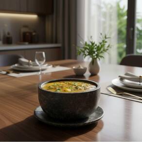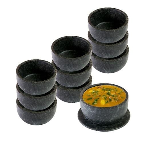 Este conjunto de bowl com prato em pedra-sabão une beleza rústica, resistência e funcionalidade perfeito para servir molhos, petiscos, caldos, sobremesas ou pequenas porções de forma elegante e única.