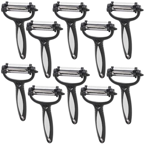 Kit 10 Descascadores de Legumes 3 Lâminas Giratórias Manual 15cm Preto Lyor Inox Plástico Multifuncional