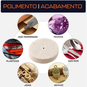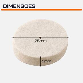- Marca: Dremax - kit exclusivos com 10 discos de feltro 25mm + 1 Suporte para discos de feltro - Indicado para polimentos - Diâmetro do disco: 25mm - Espessura: 6 mm - Diâmetro do furo: 3mm - Uso em micro retíficas de qualquer marca com a haste específica - Para polir metais e plásticos em superfícies planas ou orifícios - Indicada para polimento de metais ferrosos ou não ferrosos, aço, aço inoxidável, alumínio, bronze, cobre, latão e plástico em geral - Para uso em conjunto com a haste para pontas de feltro - Garantia: 90 dias contra defeitos de fabricação