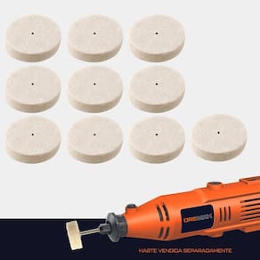 Kit com 10 Discos de Feltro 25mm para Polimento com Micro Retíficas Dremax