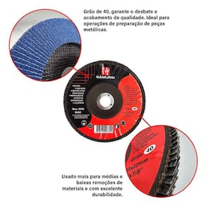 Descrição: O Disco de Lixa Flap Samurai combina desbaste e acabamento em um único produto, ideal para médias e baixas remoções. Versátil e eficiente, é perfeito para uso em lixadeiras e esmerilhadeiras angulares, proporcionando excelente desempenho em diversos materiais.