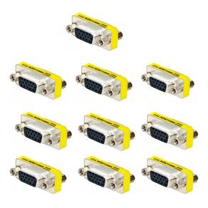 Kit com 10 emendas VGA HD15 fêmea-fêmea, ideal para realizar conexões rápidas e seguras entre cabos de vídeo. Solução prática e eficiente para estender sinais em monitores, projetores e demais dispositivos compatíveis com VGA.