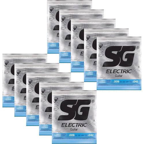 Encordoamento Para Guitarra ELÉTRICA De 6 Cordas Sg 5145 + Corda Mi (E) Extra + Palheta Os encordoamentos Sg foram desenvolvidos em parceria com grandes músicos de renome nacional e internacional, sendo fabricados no Brasil com a mais alta tecnologia e com as melhores matérias-primas nacionais e importados, sempre se preocupando e respeitando o meio ambiente. O Invólucro Anti-Corrosão Sg Strings, isola o encordoamento do contato com o oxigênio, impedindo que este apresente sinais de corrosão, preservando-o e garantindo seu brilho, pegada, sustain, afinação, e o timbre perfeito de seu encordoamento. Esta qualidade proporciona mais segurança para que o encordoamento possa ser estocado por mais tempo e quando aberto para utilização, ainda tenha o mesmo aspecto de como se tivesse sido fabricado e embalado no mesmo dia em que será usado. Especificações: - Primas em aço estanhado cilíndrico. - Bordões com revestimento de aço niquelado Nps e núcleo hexagonal de aço estanhado. E (Mi) - 009 B (Sí) - 011 G (Sol) - 016 D (Ré) - 024 A (Lá) - 032 E (Mi) - 042