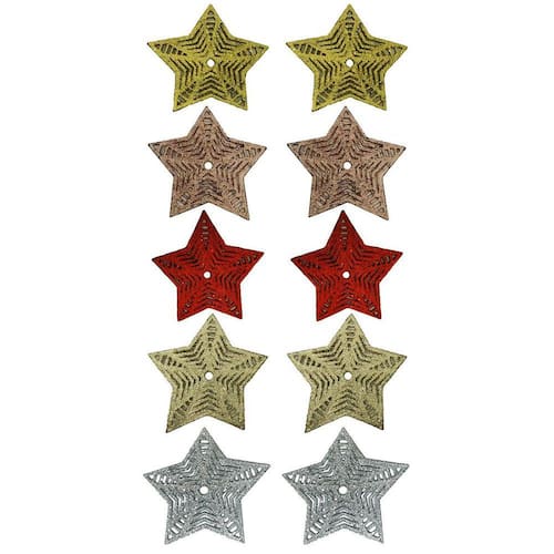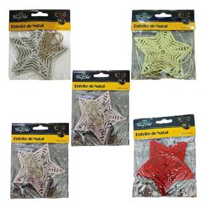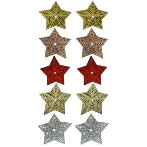 Kit 10 enfeites de natal estrelas em gliter 10 cm coloridas para árvore de natal