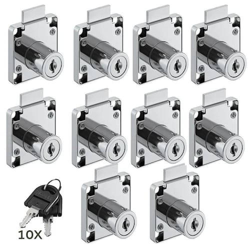 Kit 10 fechadura para gaveta 22mm niquelada hafele