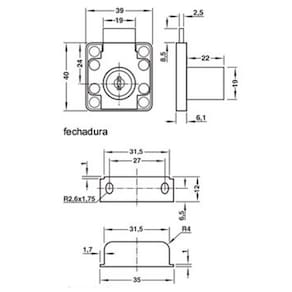 Medidas - 22mm Material - aço Uso indicado - gavetas de até 22mm de espessura Referência - 232.01.781 Acabamento - niquelado