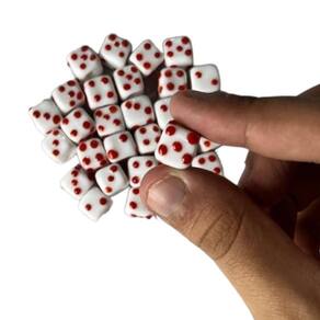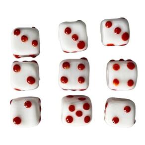 Kit com 10 firmas dados 10 mm branco e vermelho murano guias