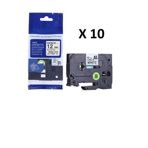 Kit 10 Fita Flexível Compatível Tze-Fx231 Branca 12Mm