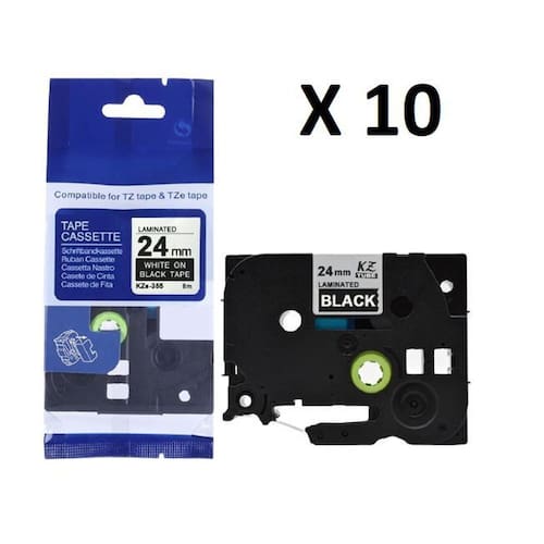 Kit 10 fitas compatível brother tze-355 etiqueta na cor preta com letras na cor branca