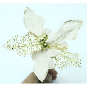 O cabo flexível e resistente permite uma integração harmoniosa em arranjos, guirlandas ou árvores, tornando-a versátil para qualquer cenário natalino. Esta flor não é apenas um adorno; ela é uma expressão de festividade e refinamento, garantindo que sua decoração capture o verdadeiro espírito e a elegância do Natal. Um toque de charme que promete ser o destaque em suas comemorações!