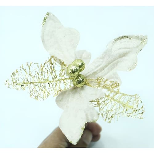 Kit 10 Flor Artificial Decoração Brilho Ouro Glitter 15cm