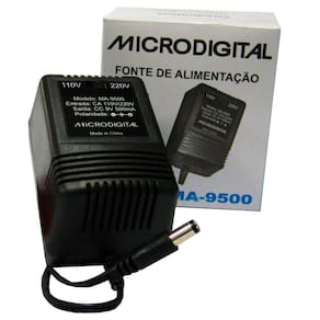 Fonte de Alimentação Bivolt 9VDC 0,5A MA-9500 Microdigital com chave de seleção de voltagem. A fonte vem selecionada pela fábrica para operar em 220 volts. Indicada para pedaleiras.Especificações- Tipo: Bivolt- Entrada: CA 110/220 V- Saída: CC 9V - 500 MA- Polaridade: -/+ (centro negativo)- Plug: P-4Características- Marca: Microdigital- Modelo: MA-9500- Cor: Preto- Origem: China- Medidas: 4 x 5 x 7,5 cm- Cabo: 1,80 mConteúdo da Embalagem- 10 Fontes MA-9500- Dimensões da Embalagem (AxLxP): 6 x 20 x 43 cm*imagens meramente Ilustrativas