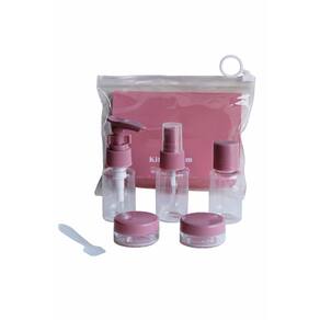 Características do Kit de frascos: Material: Plástico Itens: 1 estojo 1 frasco spray(30m) 1 frasco Valvula Pump(30ml) 1 frasco tampa disk top(30ml) 2 potes(10g) 1 Espátula Ean: 7908153054235