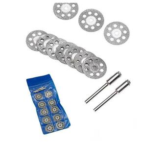 - Jogo com 10 discos diamantados 22mm e 2 hastes 3mm