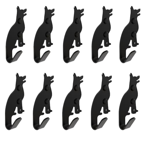 BENEFÍCIOS Design exclusivo no formato de Cachorro Gancho de aço com corte preciso feito à laser de última geração Recorte das bordas com extrema precisão Durabilidade maior devido a resistência do material utilizado Acompanha acabamento para esconder a cabeça dos parafusos de fixação Maior resistência de peso nos ganchos de Cachorro Nível de instalação: Fácil Modo de instalar: Furar a parede e parafusar os ganchos.