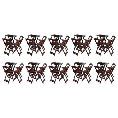 Kit 10 Jogos De Mesa Bistrô De Madeira Com 4 Cadeiras Dobravel Ideal Para Bar E Restaurante Imbuia - Cor: Marrom