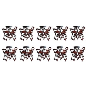 Kit 10 Jogos de Mesa Bistrô de Madeira Dobrável com 3 Banquetas - Imbuia - Marrom