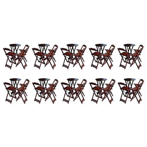 Kit 10 Jogos De Mesa Bistrô De Madeira Dobrável Com 3 Banquetas - Imbuia