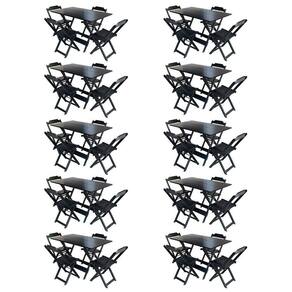 Kit 10 Jogos De Mesa Com 4 Cadeiras De Madeira Dobravel 120x70 Para Bar E Restaurante - Preto - Cor: Preto