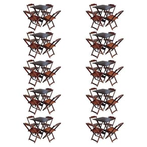 Kit 10 Jogos De Mesa Com 4 Cadeiras De Madeira Dobravel 60x60 Ideal Para Bar E Restaurante - Imbuia - Cor: Marrom