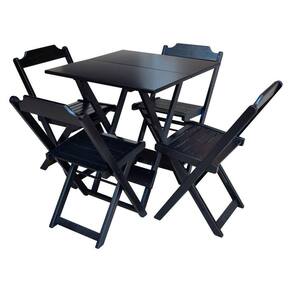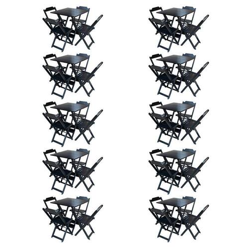 Kit 10 Jogos De Mesa Com 4 Cadeiras De Madeira Dobravel 60x60 Ideal Para Bar E Restaurante - Preto - Cor: Preto