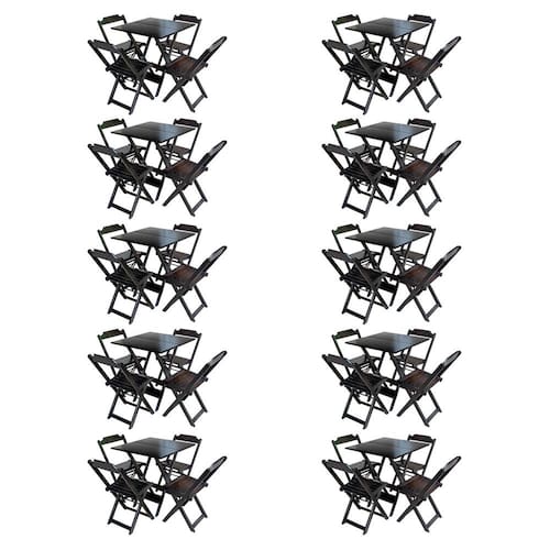 Kit 10 Jogos De Mesa Com 4 Cadeiras De Madeira Dobravel 70x70 Ideal Para Bar E Restaurante - Tabaco é ideal para bares, restaurantes, estabelecimentos, áreas de lazer e tambem para sua casa. Feito em madeira maciça, tornando resistentes e duráveis. Seu design permite que seja encaixado em qualquer ambiente, trazendo um toque a mais para seu estabelecimento. Além de sua durabilidade, o que lhe trará conforto para servir seus clientes. Por ser dobrável torna-se mais fácil guardar, manusear e limpar o produto. Atenção: EVITE USAR PRODUTOS ABRASIVOS E QUíMICOS PARA LIMPEZA DO PRODUTO, aconselha-se o uso de pano umedecido para melhor conservação; mantenha o produto fora de chuva e sol constantes MESA Cor: Tabaco Modelo: Dobravel Dimensões: Altura 76cm | Largura 70cm | Profundidade 70cm CADEIRA Cor: Tabaco Modelo: Dobravel Dimensões: Altura 80cm | Largura 45cm | Profundidade 42cm