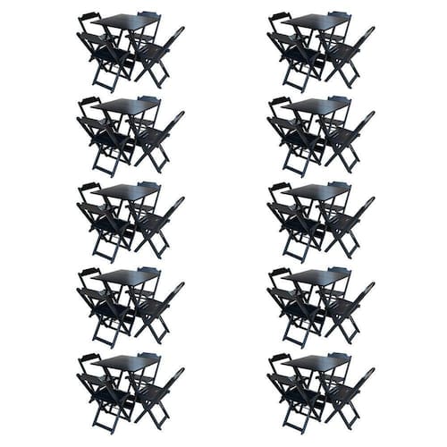 Kit 10 Jogos De Mesa Com 4 Cadeiras De Madeira Dobravel 70x70 Ideal Para Bar E Restaurante - Preto - Cor: Preto