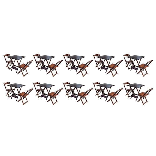 Kit 10 Jogos De Mesa Dobravel Com 2 Cadeiras De Madeira 70x70 - Imbuia - Cor: Marrom