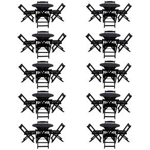 Kit 10 Jogos De Mesa Dobravel Com 4 Cadeiras Tampo Redondo 70x70 Preto - Cor: Preto